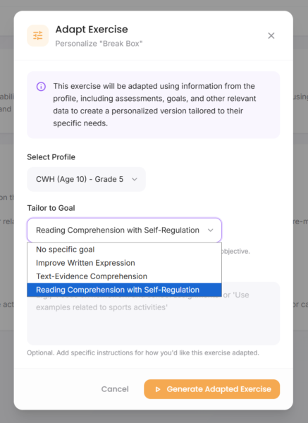 Advocate360 adapt exercise screen