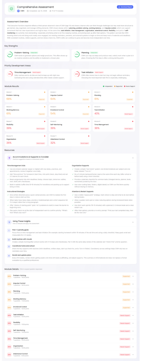 Advocate360 Executive Function Assessment Report