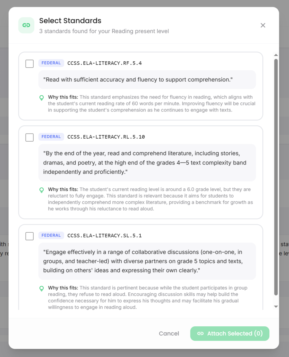 Yes. It can help you identify and attach standards, so goals stay grounded in what learners are expected to access.