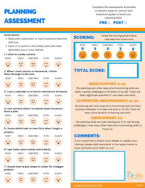 Life Skills Advocate – Executive Functioning Assessment (Smiley-O-Meter)